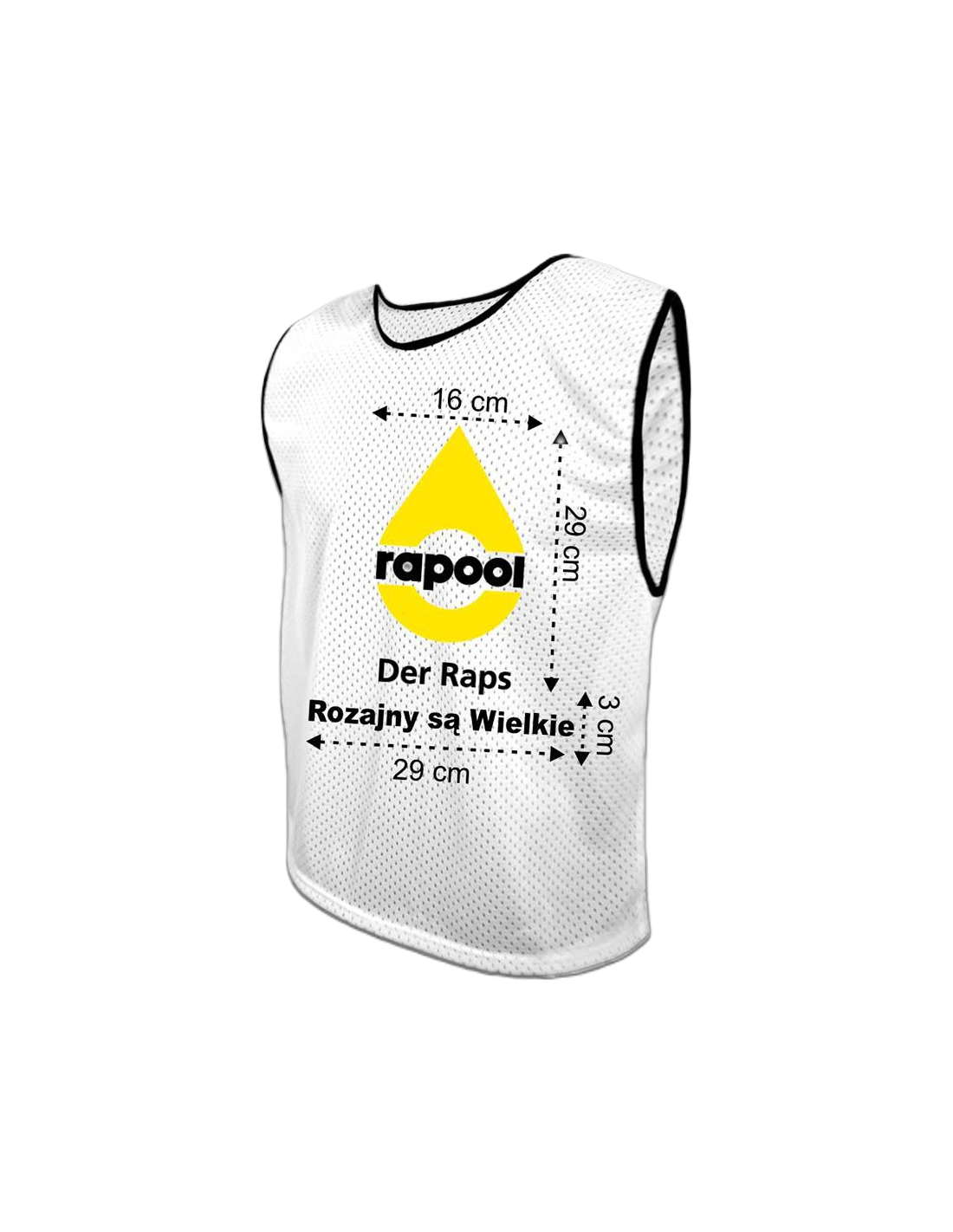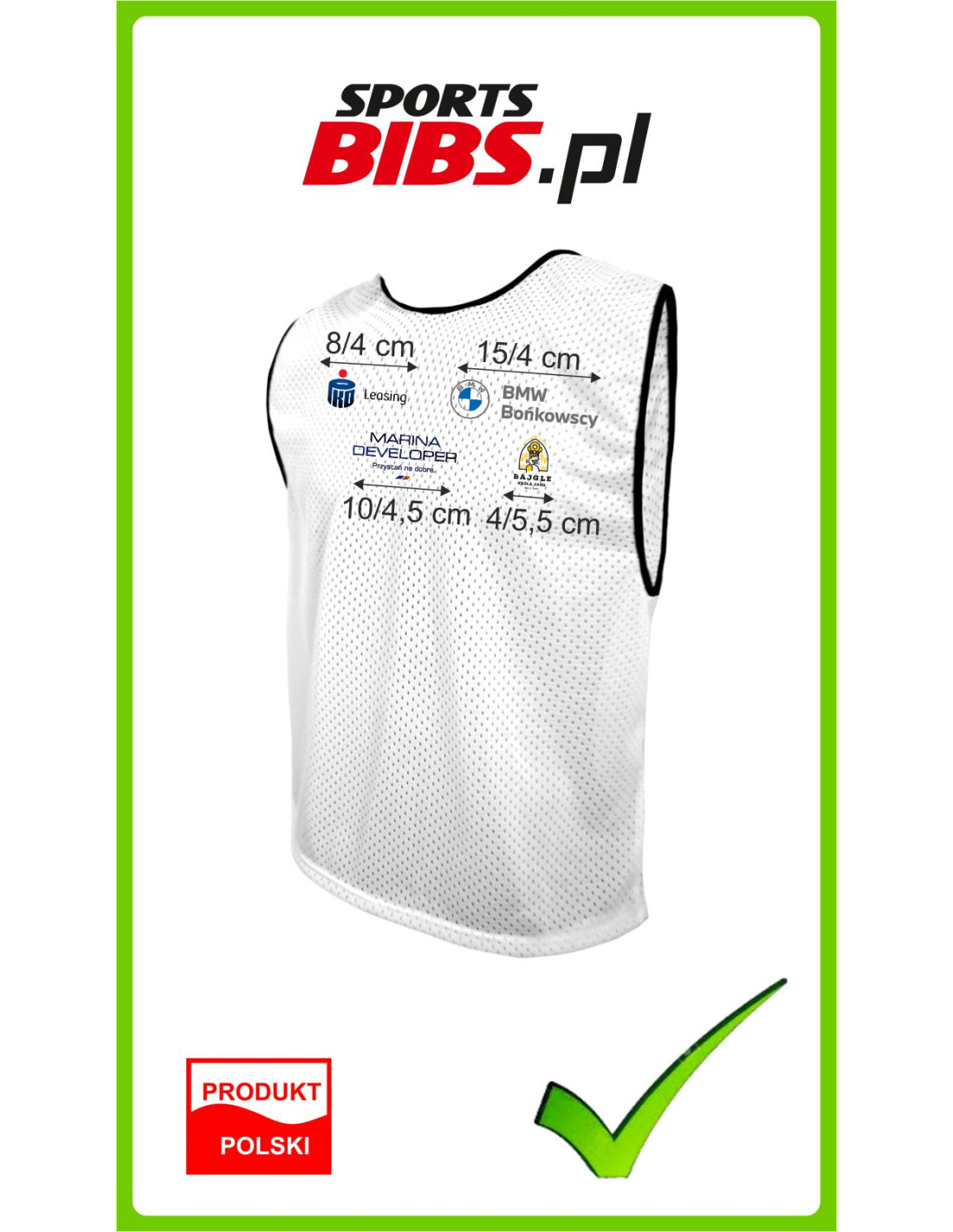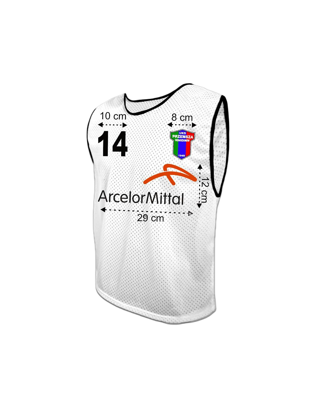 • Materiał, z którego wykonujemy koszulki jest bardzo elastyczny. Zmiana zawodnika na boisku? Bez problemu! Nasz znacznik może rozciągnąć się nawet o 5 do 8 cm!